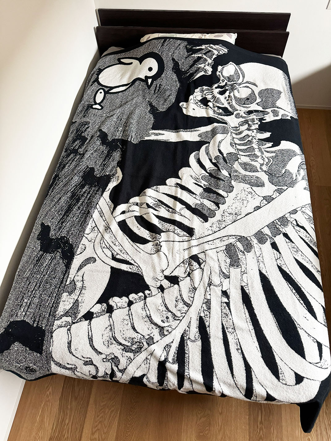 今治のタオルケットとして仕立てることで、この怪奇世界は「包まれる風景」になる。